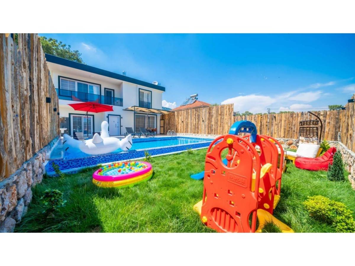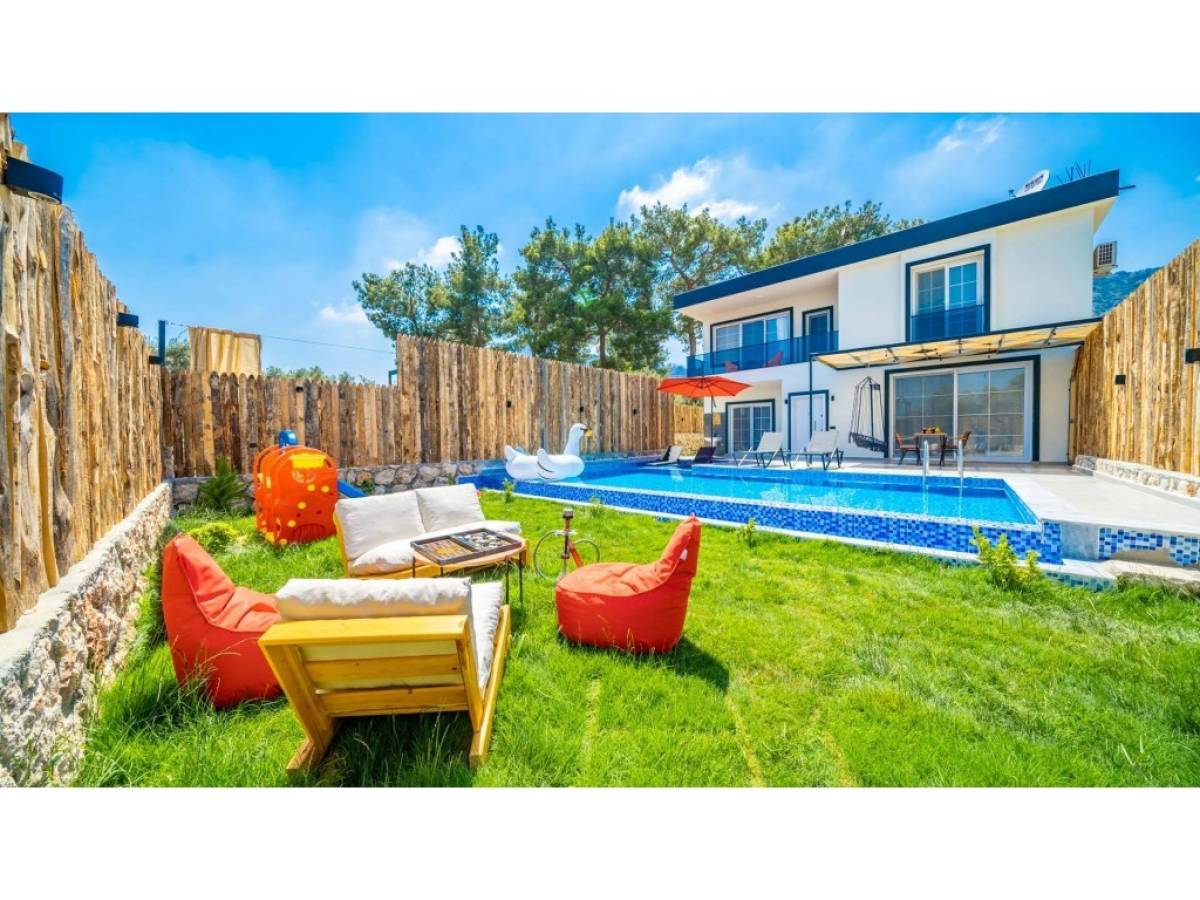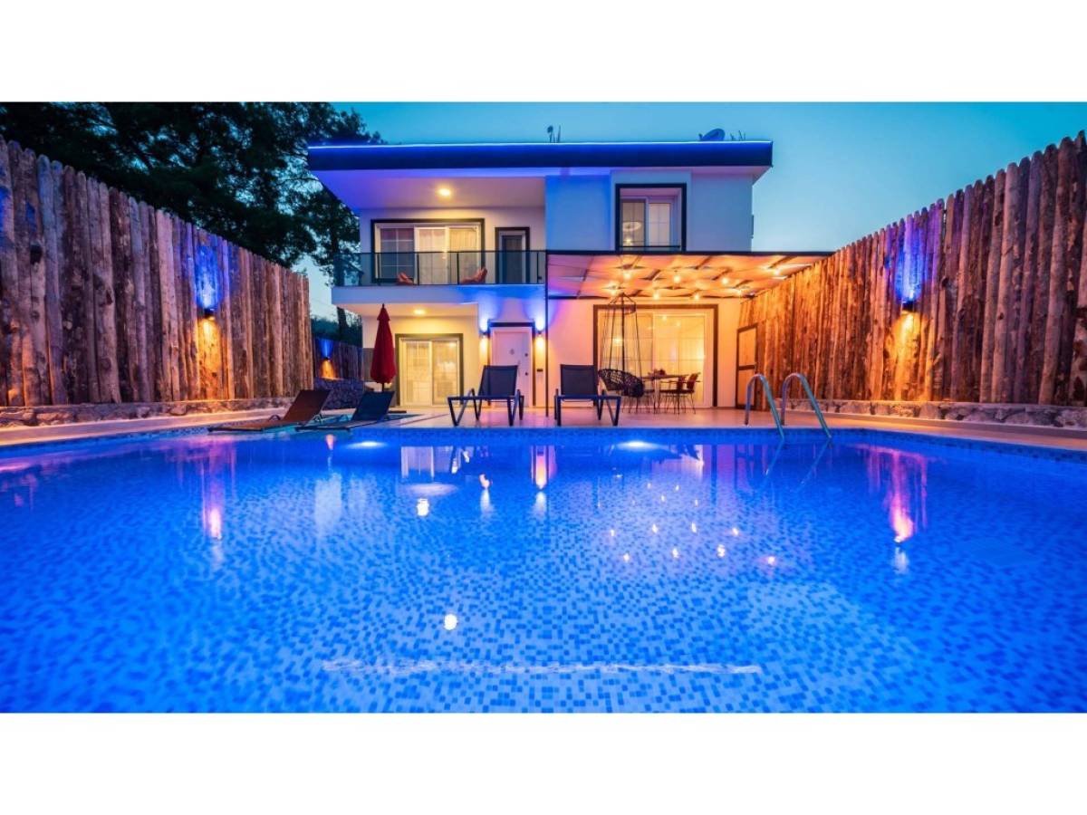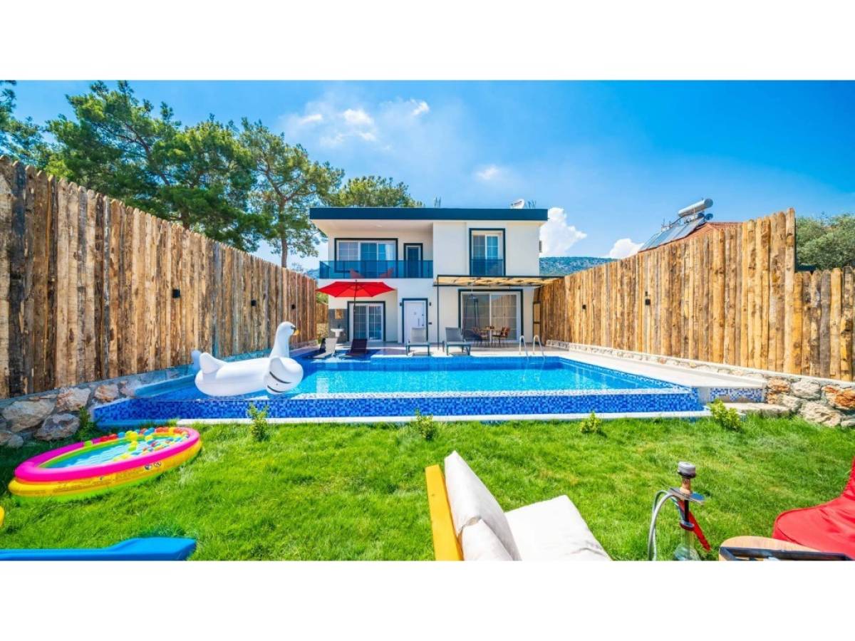 Evin dış alanında bulunan özel yüzme havuzu, günün her saatinde özgürce serinleme imkânı sunarken; güneşlenme alanları, şezlonglar ve oturma köşeleri manzaranın tadını çıkarmanız için idealdir. Akşam saatlerinde ise gün batımı eşliğinde sevdiklerinizle keyifli anlar yaşayabilir, Kalkan’ın huzurlu atmosferini doyasıya hissedebilirsiniz.