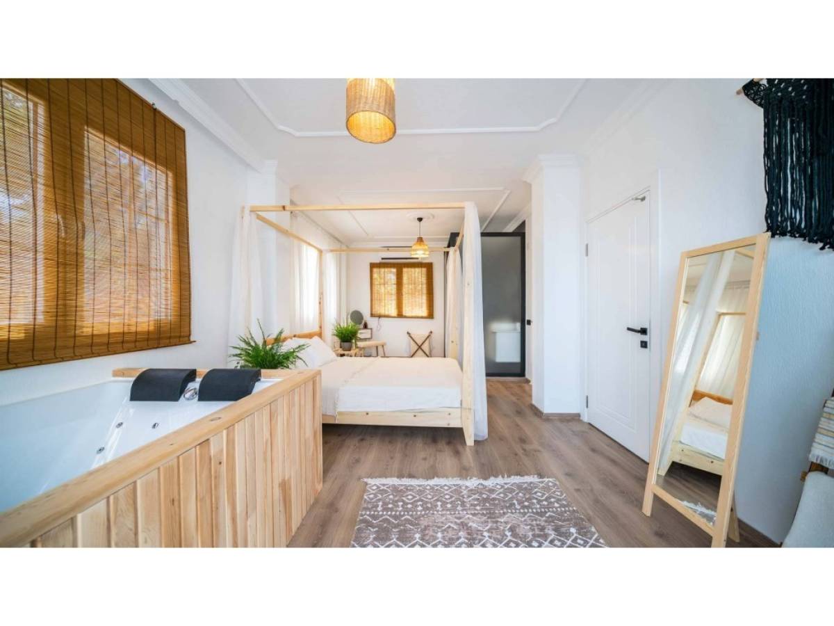 Modern ve şık mimarisiyle dikkat çeken ev; ferah salonu, geniş cam alanları ve özenle dekore edilmiş yaşam alanlarıyla misafirlerine ev konforunu fazlasıyla sunar. Tam donanımlı mutfak, kendi yemeklerinizi rahatlıkla hazırlayabilmeniz için tüm detaylar düşünülerek hazırlanmıştır. Yatak odaları konforlu, banyolar ise modern ve kullanışlıdır. Bazı odalarda yer alan jakuzi, tatilinizi daha keyifli ve dinlendirici hale getirir.